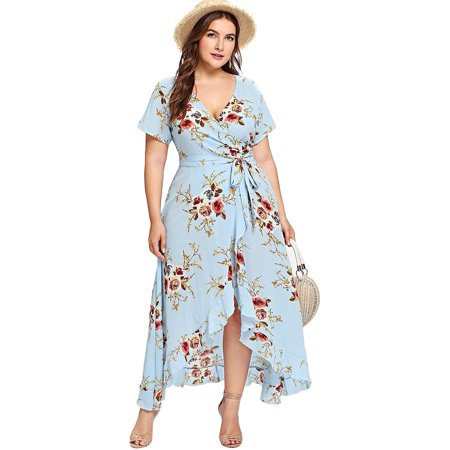 Plus Size Casual V Neck Belted Empire Waist Asymmetrical Maxi Dress Xxl Walmart Canada