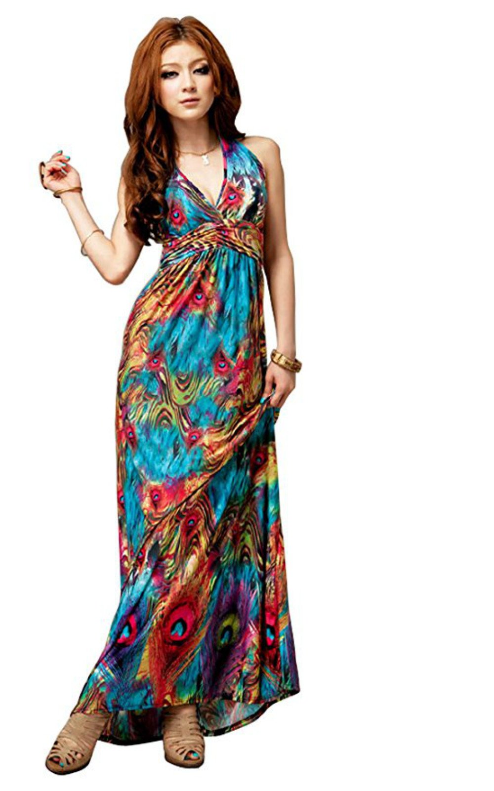 Buy Women Flaming Empire Waist Summer Boho Halter V Neck Long Beach Dresses Blue Online At Desertcart Fiji